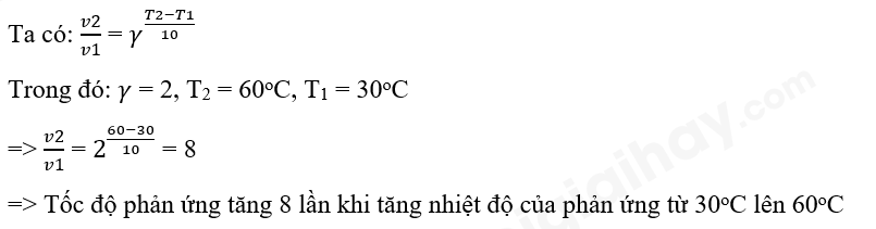 Nếu hệ số nhiệt độ Van’t Hoff bằng 2, tốc độ phản ứng thay đổi như thế nào khi tăng nhiệt độ của phản ứng từ 30oC lên 60oC?