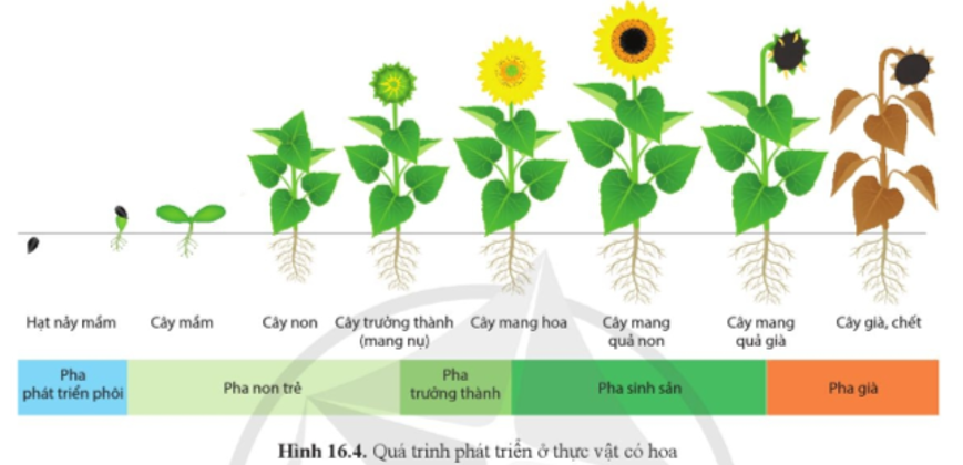 CH: Quan sát hình 16.4, mô tả các giai đoạn phát triển ở thực vật có hoa.