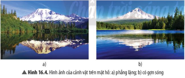 3. Ảnh của cảnh vật trên mặt hồ trong hai trường hợp ở Hình 16.4 khác nhau thế nào?