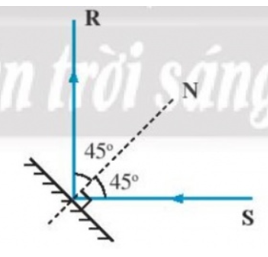 Tia tới nằm ngang và tia phản xạ hướng thẳng đứng nên góc hợp bởi tia tới và tia phản xạ bằng 90°. Góc tới = góc phản xạ = 45°.