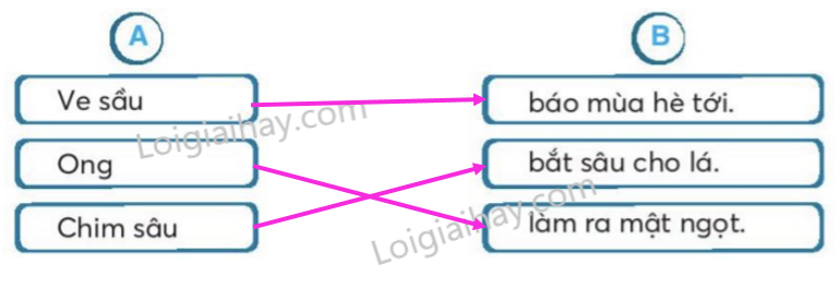 Em đọc kĩ các từ ngữ ở cột A và cột B để nối cho phù hợp.