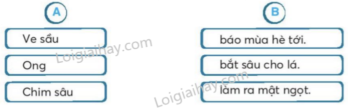 Nối từ ngữ ở cột A với từ ngữ phù hợp ở cột B để tạo câu.