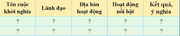 2. Lập bảng hệ thống kiến thức về các cuộc khởi nghĩa tiêu biểu trong phong trào Cần vương và khởi nghĩa Yên Thế theo nội dung sau: