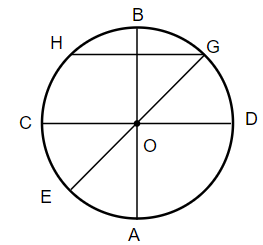 Hình tròn tâm O có 3 đường kính là BA, CD, EG.