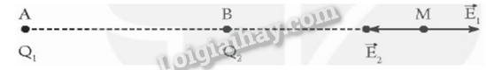Do điện tích \({Q_1}\)và \({Q_2}\)là trái dấu nên để cường độ điện trường tại M bằng 0 thì M phải nằm ngoài đoạn nối AB