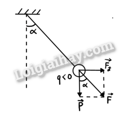 \( =  > \tan \alpha  = \frac{{\left| q \right|E}}{{mg}} = \frac{{{{10}^{ – 8}}{{.10}^5}}}{{0,{{1.10}^{ – 3}}.10}} = 1 =  > \alpha  = \frac{\pi }{4}(rad)\)