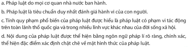 – Đọc thông tin, xác định tính quy phạm phổ biến, tính quyền lực bắt buộc chung của pháp luật được thể hiện trong thông tin.