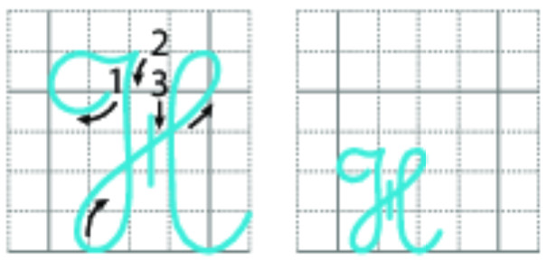 + Bước 2: Không nhấc bút, hơi lượn sang trái viết nét khuyết dưới liền mạch với nét khuyết trên, đến gần cuối nét khuyết thì lượn lên viết nét móc phải, dừng bút bên phải ĐK dọc 3, giữa ĐK ngang 1 và 2 (khoảng cách giữa 2 nét khuyết bằng 0.5 ô li, 2 đầu khuyết cân đối với nhau)