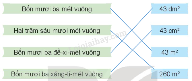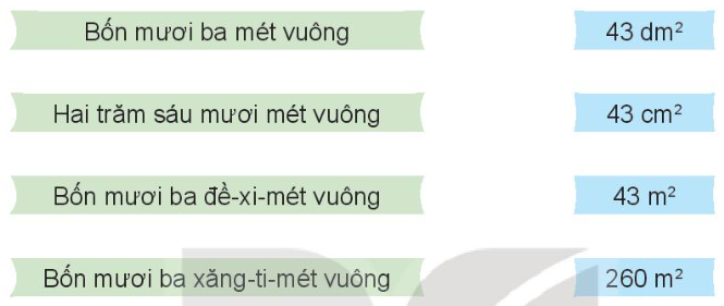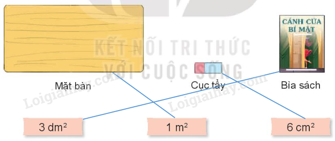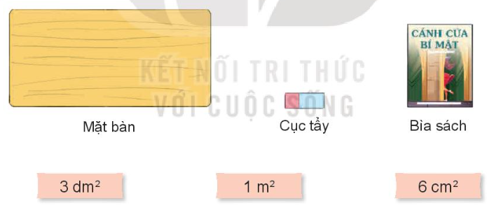 Chọn số đo phù hợp với diện tích của mỗi đồ vật dưới đây.