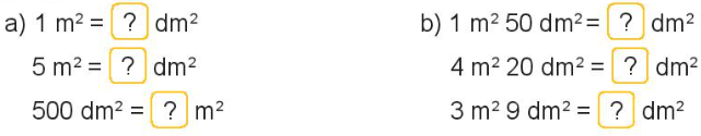 Áp dụng cách đổi: 1m2 = 100dm2