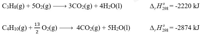 Biến nhiệt tạo thành chuẩn của CO2(g) và H2O(l)  tương ứng là -393,5 và -285,8 kJ/mol.