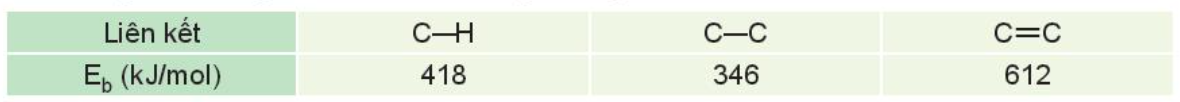 Câu 4. Cho giá trị trung bình của các năng lượng liên kết ở điều kiện chuẩn: