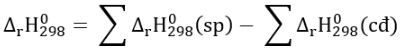 – Biến thiên enthalpy của phản ứng được xác định bằng hiệu số giữa tổng nhiệt tạo thành các chất sản phẩm (sp) và tổng nhiệt tạo thành của các chất đầu (cđ).