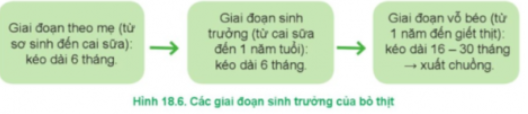 – Quy trình nuôi dưỡng, chăm sóc bò thịt ở Hình 18.6 được thực hiện theo 3 giai đoạn: