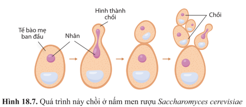 – Nảy chồi ở nấm men nhân không nhân đôi mà tách trong quá trình tách tế bào con từ tế bào mẹ và liên tục phân chia và phát triển đồng thời.