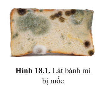 Hình 18.1 là ảnh chụp lát bánh mì bị mốc. Vì sao lát bánh mì bị mốc lại lan rộng theo thời gian?