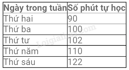 Bảng thống kê sau đây cho biết thời lượng tự học tại nhà trong 5 ngày của bạn Tú