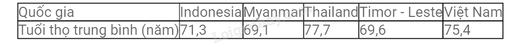 Chọn biểu đồ phù hợp để biểu diễn dữ liệu về tuổi thọ trung bình ở một số quốc gia Đông Nam Á năm 2019.
