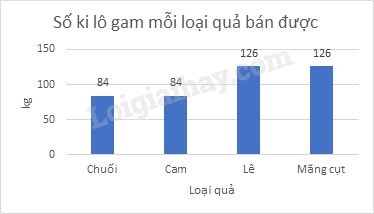 Giả sử cửa hàng đó bán được 420kg quả các loại. Biểu đồ cột thể hiện số kg hoa quả mỗi loại bán được phù hợp là: