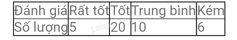 Bảng thống kê bên cho biết số lượng khách đánh giá chất lượng dịch vụ của một khách sạn: