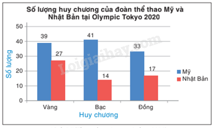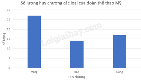 Biểu đồ cột thể hiện số huy chương của đoàn thể thao Mỹ là: