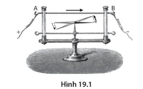 Trong thí nghiệm Osterd, một kim nam châm tự do đặt cân bằng song song với một đoạn dây dẫn AB, khi cho dòng điện chạy vào trong dây dẫn, thì kim nam châm quay lệch khỏi vị trí ban đầu (H19.1). Giải thích tại sao?