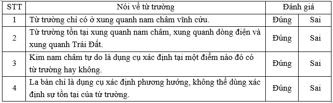 Hãy khoanh vào từ “đúng” hoặc “sai” trong các câu dưới đây khi nói về từ trường.