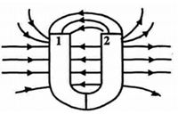 Nhìn vào đường sức từ của nam châm hình móng ngựa sau.
