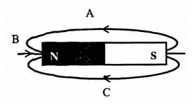 Lực từ tác dụng lên kim nam châm trong hình sau đặt ở điểm nào là mạnh nhất?