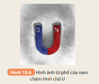 Câu 2: Hình 19.6 cho biết từ phổ của nam châm hình chữ U. Dựa vào đó hãy vẽ đường sức từ của nó. Có nhận xét gì về các đường sức từ của nam châm này?