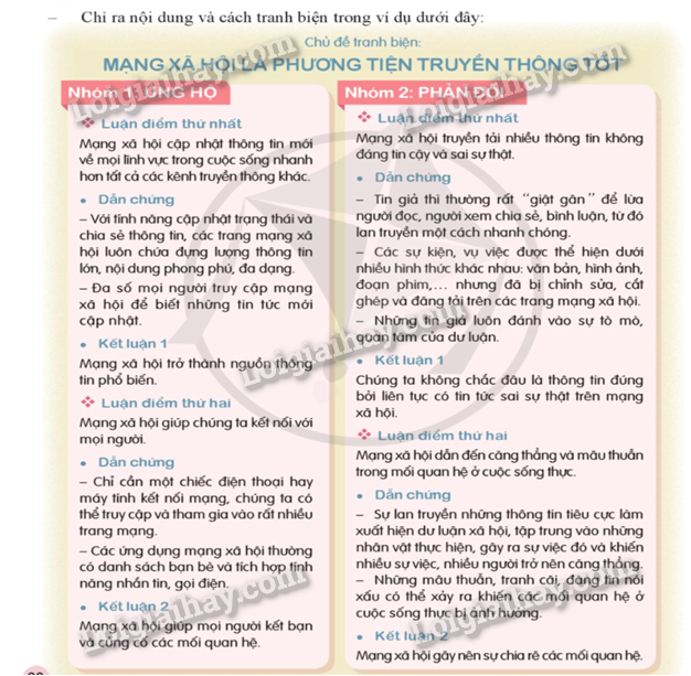 Chỉ ra nội dung và cách tranh biện trong ví dụ dưới đây