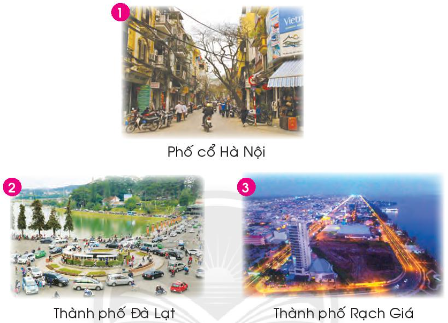 – Bức ảnh chụp cảnh ở phố cổ Hà Nội, thành phố Đà Lạt và thành phố Rạch Giá.