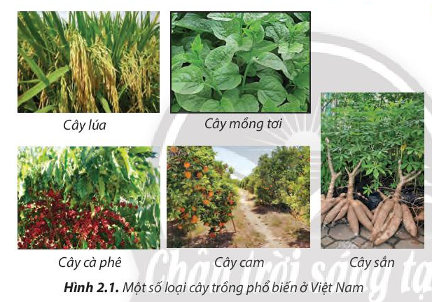 1.Các loại cây trong Hình 2.1 thuộc những nhóm cây trồng nào?