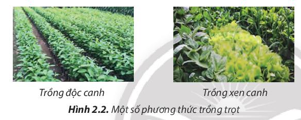 3. Quan sát Hình 2.2 và trình bày quan điểm khác nhau giữa trồng độc canh và trồng xen canh.