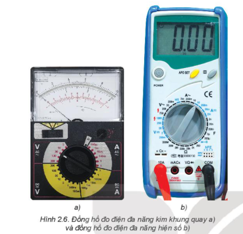 Điều chỉnh vị trí của kim đo, chọn thang đo và cắm vị trí của các dây đo trên đồng hồ đa năng (Hình 2.6) để đo hiệu điện thế, cường độ dòng điện và điện trở như thế nào?