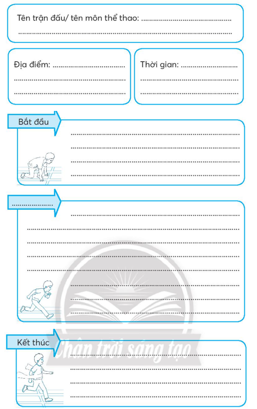 Hoàn thành sơ đồ tìm ý cho đoạn văn thuật lại một trận đấu hoặc một buổi luyện tập thể thao em đã chứng kiến hoặc tham gia.