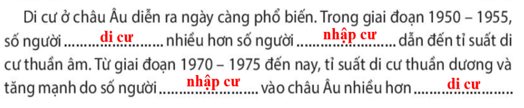 – Giải thích: do châu Âu có tỉ suất tăng dân số tự nhiên rất thấp (có năm xuống đến giá trị âm), những năm gần đây dân số tăng chủ yếu do nhập cư.