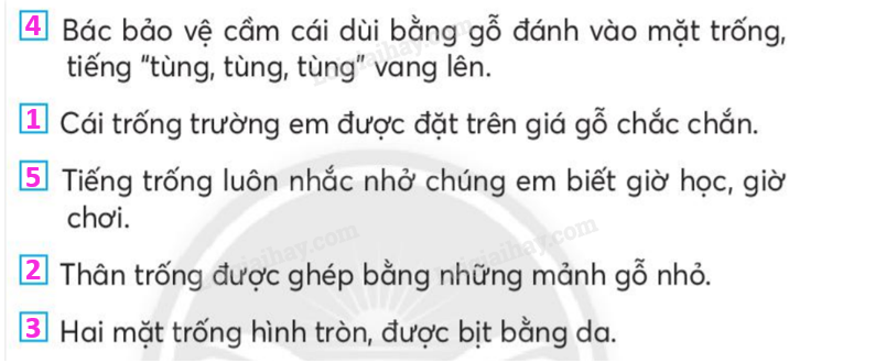 Em đọc kĩ các câu và sắp xếp sao cho chúng tạo thành một đoạn văn hợp lý.