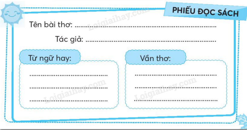 Viết vào Phiếu đọc sách những điều em đã chia sẻ với bạn sau khi đọc một bài thơ về trường học.