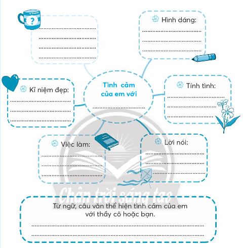 Hoàn thành sơ đồ tìm ý cho đoạn văn thể hiện tình cảm của em với thầy cô giáo hoặc một người bạn.