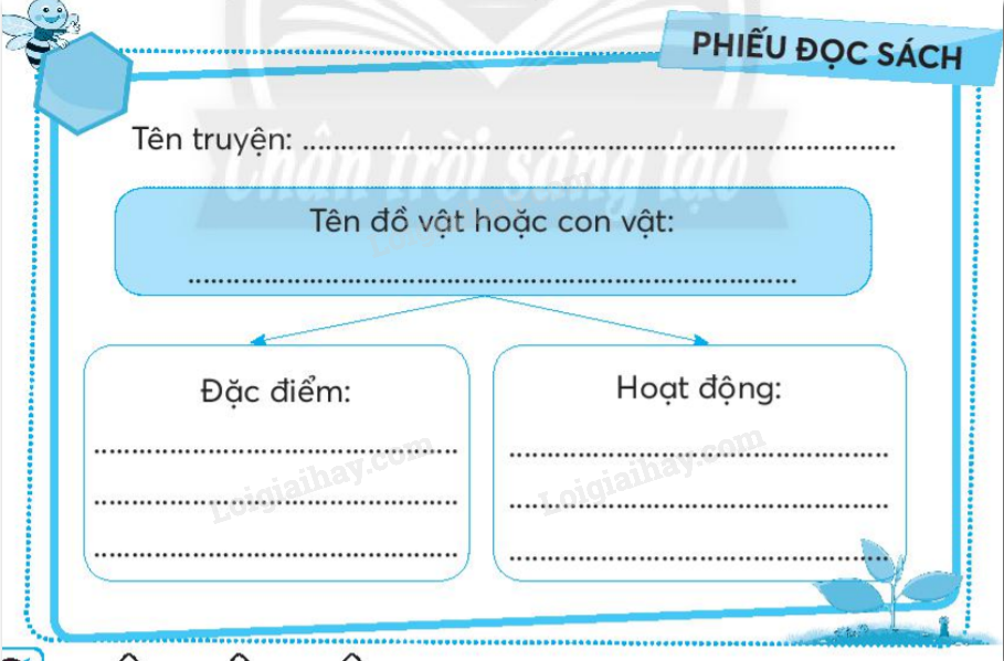 Em lựa chọn một truyện mà mình đã đọc về đồ vật hoặc con vật và viết thông tin vào Phiếu đọc sách.