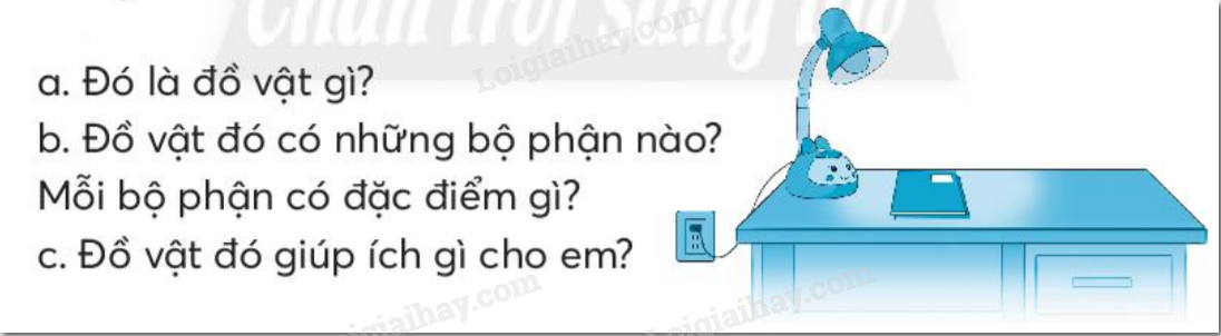 Em dựa vào hình vẽ và gợi ý để giới thiệu về chiếc đèn bàn.
