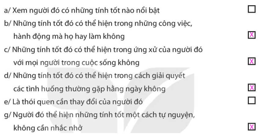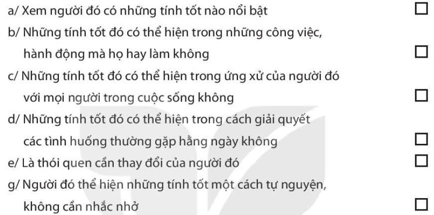 Những phương án nào dưới đây phù hợp với suy nghĩ của em khi xác định đức tính đặc trưng của một người?