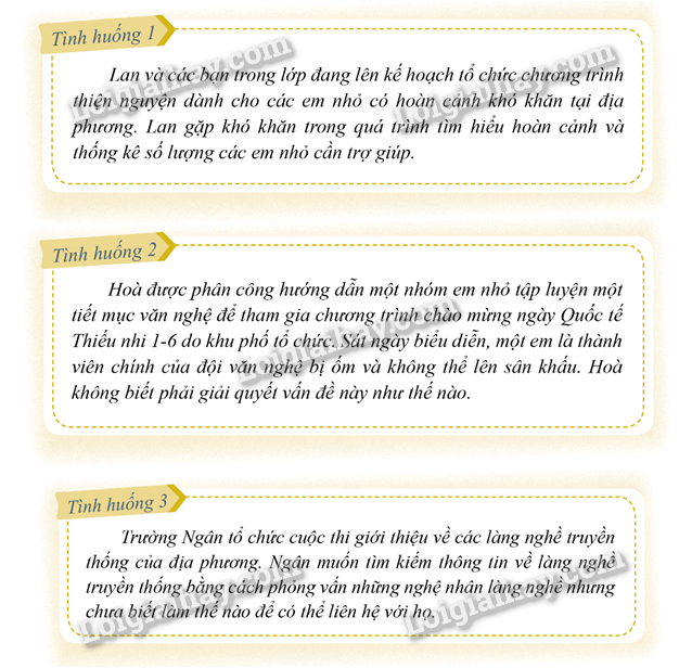 Phương pháp giải: HS đọc và phân tích, giải quyết tình huống dựa trên trải nghiệm hoặc hiểu biết của bản thân