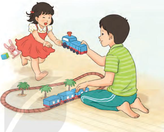 a. Người em nói với anh là: Em muốn chơi chiếc xe ô tô xanh này.