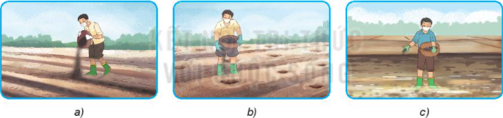 Quan sát Hình 2.3 và nêu các cách bón phân lót tương ứng với mỗi hình.
