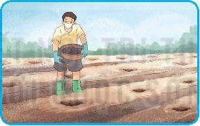 – Cây lúa: rắc đều phân lót lên mặt ruộng.