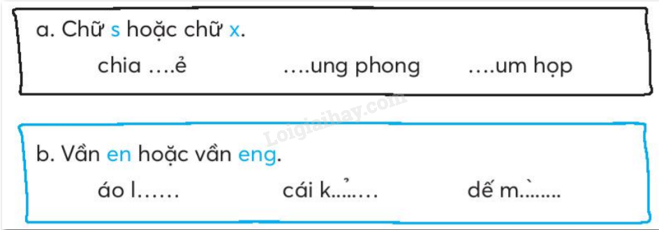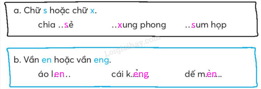 Em đọc kĩ các từ và điền chữ thích hợp.