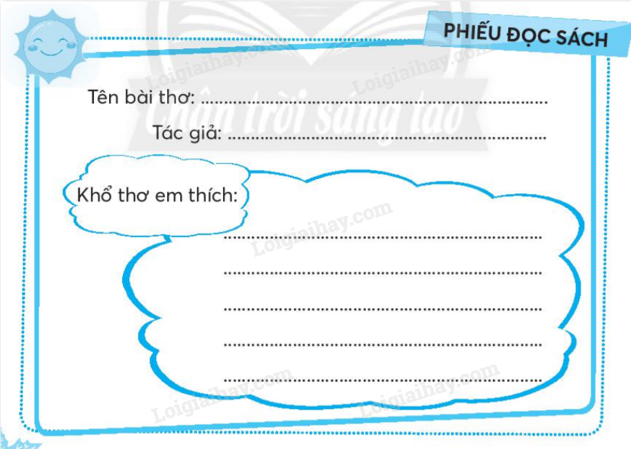 Viết vào Phiếu đọc sách những điều em đã chia sẻ với bạn sau khi đọc một bài thơ về trẻ em.