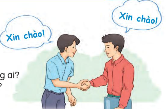 a. Hai người trong tranh đang bắt tay và chào hỏi nhau.